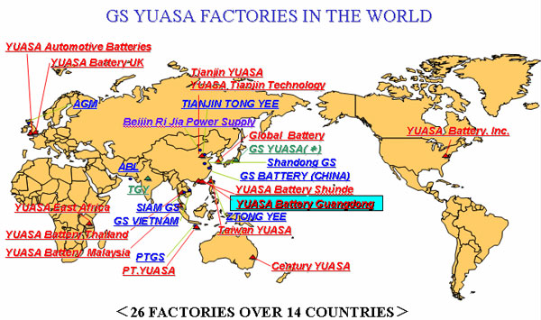 “GS-YUASA”(株式會社杰士湯淺) 成立于1918年,專業、專注于蓄電池的研究、開發與生產。在全球各地設有二十多家生產工廠。主要產品有閥控密封式鉛酸蓄電池、啟動用蓄電池、鋰電池等。